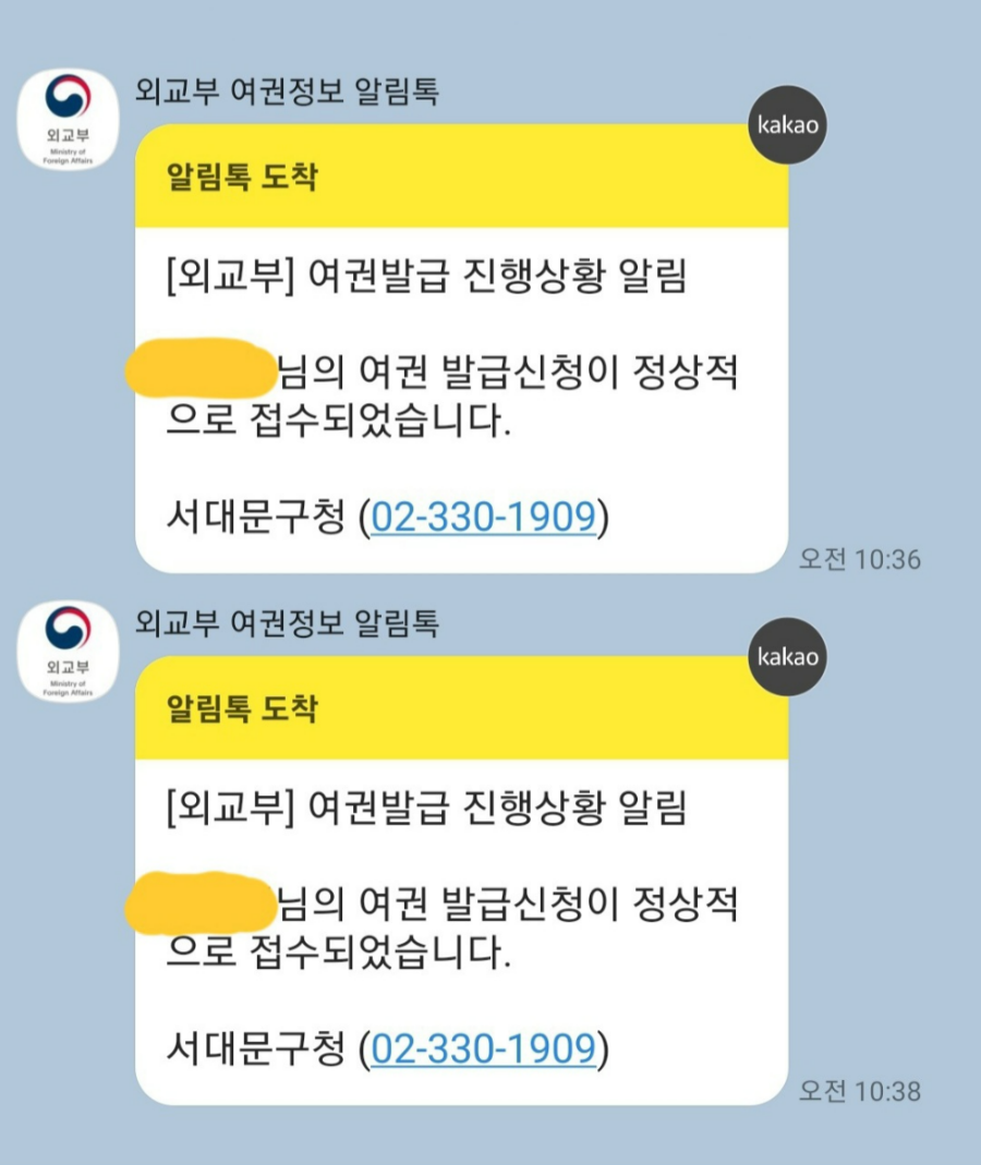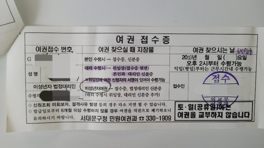 여권 접수증도 2장 받았고, 완료 문자를 받으면 찾으러 가면 된다고 합니다.