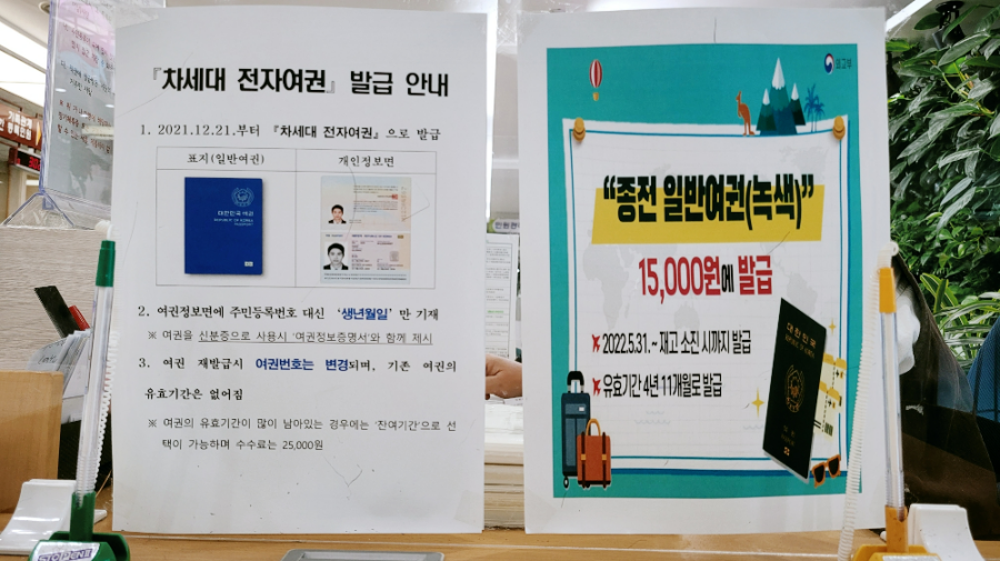 종전 일반여권은 아직 재고가 남아있는지 신청이 가능하다길래 아이 여권은 녹색 일반여권으로 신청했어요. 미성년자는 5년마다 재발급이 필요하니, 굳이 돈 더 내고 차세대 전자여권을 만들 필요가 없다는 생각이 들었거든요.