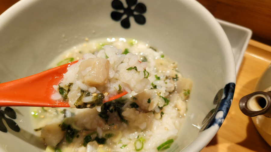 함께 제공되는 따뜻한 육수를 부어서 먹으면 되는데요, 생선회가 살짝 익으면서 생기는 감칠맛이 일품이에요.