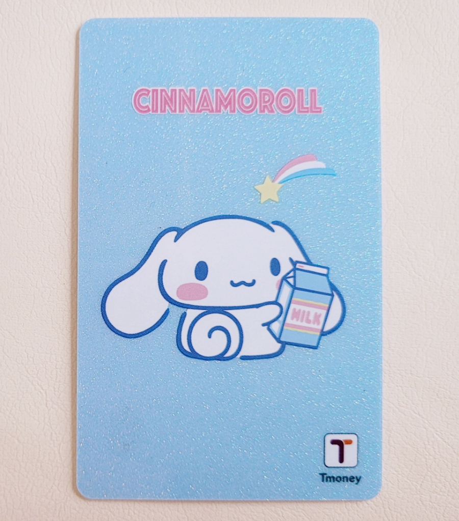 예전에 집 앞 편의점에 갔을 때는 카드 종류가 1개만 있어서, 카드를 구입하는 날엔 초등학교 앞에 위치한 CU에 가보았어요. 학교 앞이라 그런지, 산리오 캐릭터 카드들이 있더라고요. 시나모롤, 마이멜로디, 쿠로미가 있었는데 아드님은 시나모롤로 골랐어요 :)