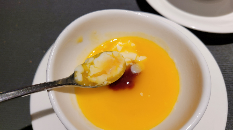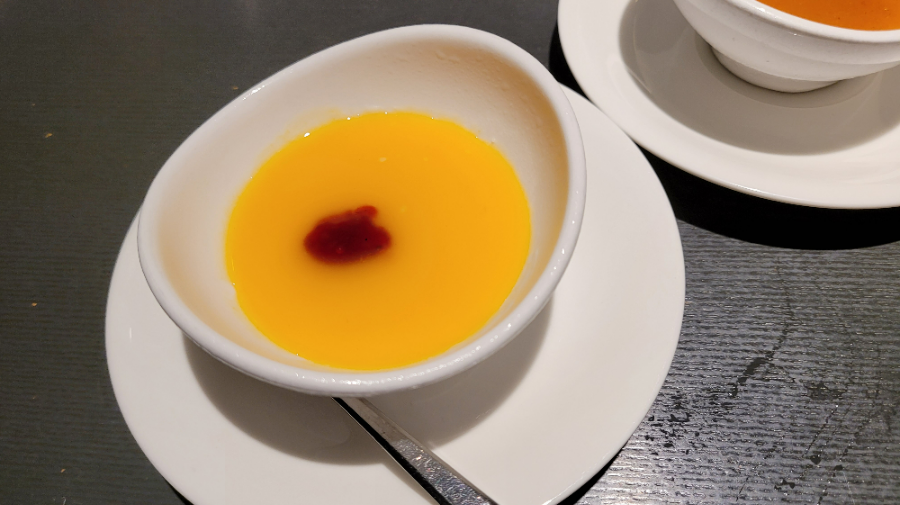 Below, there was milk pudding, and on top, there was yellow pudding (presumably mango-flavored). It was a smooth and delightful dessert that was easy to enjoy.
