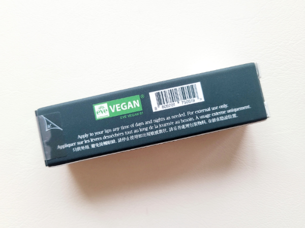 The product features the EVE VEGAN label, which certifies that it contains no animal-derived ingredients and has not been tested on living animals.